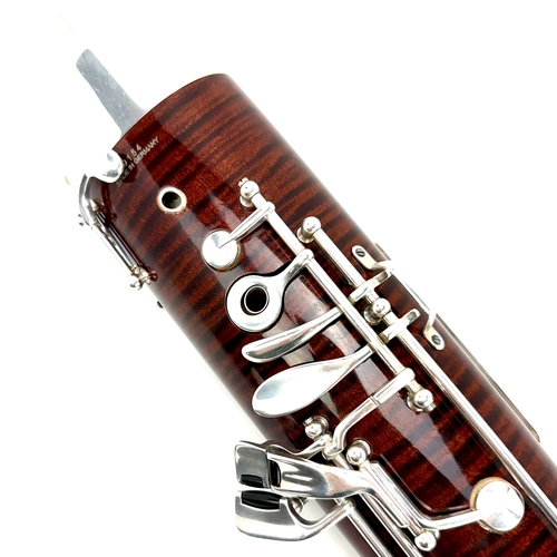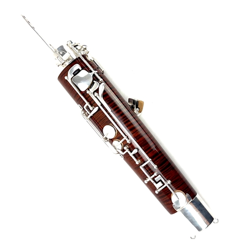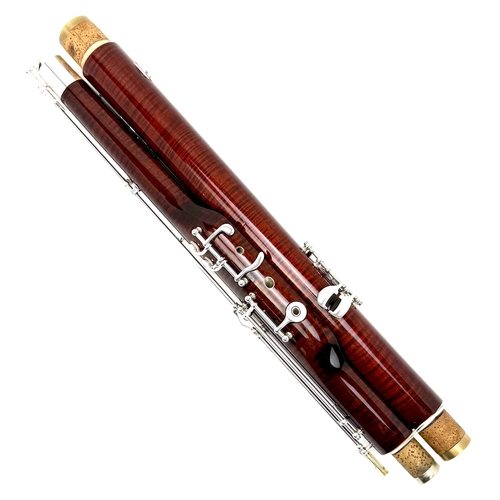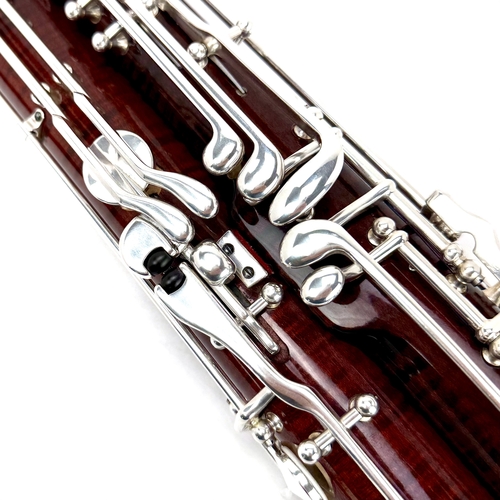 THIS BASSOON IS ACTUALLY THE TOP MODEL M222CL IN DISGUISE. THE BODY AND TONE HOLES ARE IDENTICAL TO THE 222CL .. ONLY THE KEYS ARE DIFFERENT. THE INSTRUMENT HAS THE TRADITIONAL KEYS AND THE 222CL HAS THE MUCH MORE EXPENSIVE “PROFESSIONAL” KEYS. YOU GET THE SOUND AND PERFORMANCE WITHOUT THE COST! BUT IT HAS LOTS OF FEATURES …. THE BEAUTIFUL LACQUERED BODY IS IN PRISTINE CONDITION TOO!